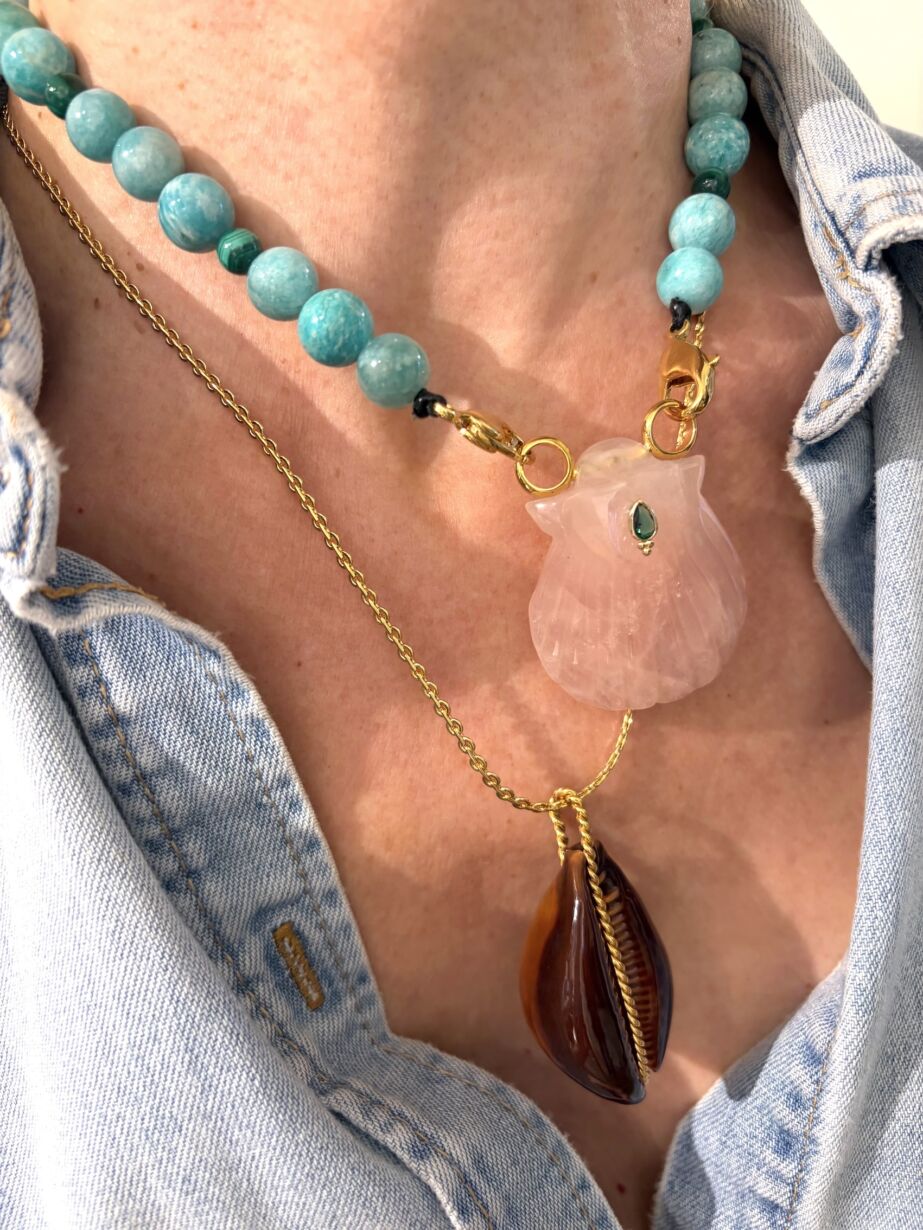 “Cypraea” natural shell pendant set with a twisted wire – everything is 24 carat gold plated– Each piece of jewelry is made in Paris. Original Sande Paris design.