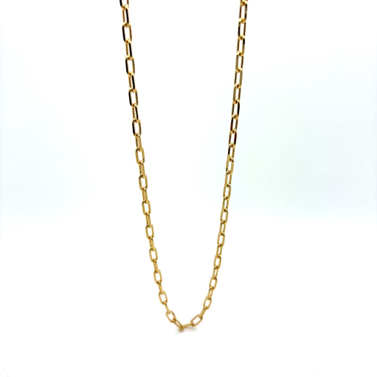 Longue chaine Sautoir mailles ovales carrées dorée à l’or 24 carats.
