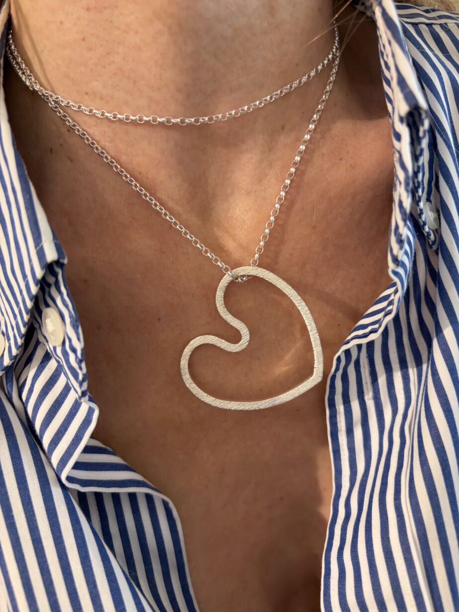Sautoir Coeur Amoureux texturé à la main, se compose d’une chaîne et de son pendentif « Coeur » signature de la maison.
